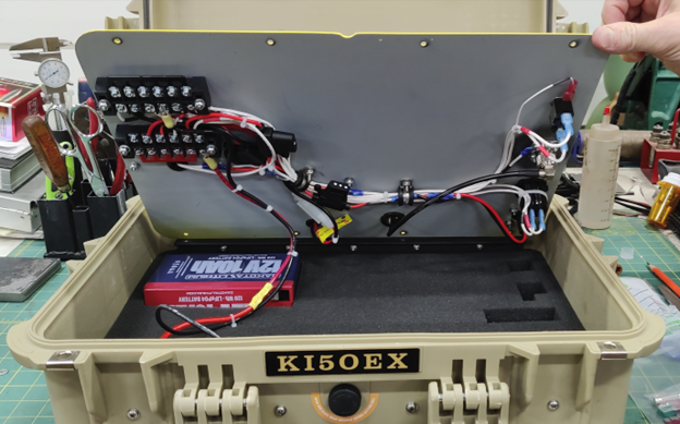 I handed off my case to Tony and he built angle iron supports and a plate to hide the battery, wires, and terminals underneath. He offered to help with the build and provide the wire and guidance when I had everything ready.