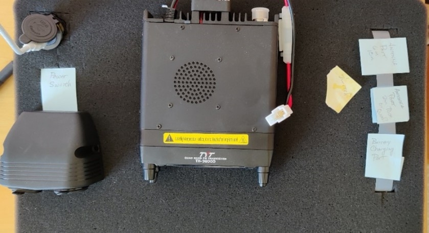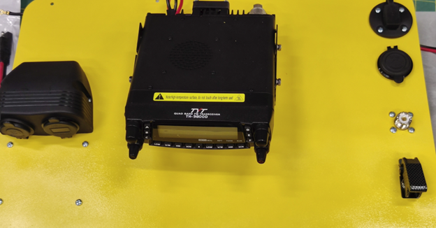 Day two began with mounting the radio and accessories. Not shown are grommets that were added around the holes for the wires going through the mounting plate.