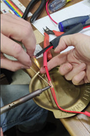 We had to do a bit of soldering to retrofit the battery charger from alligator clips to the appropriate connector for the charging port.