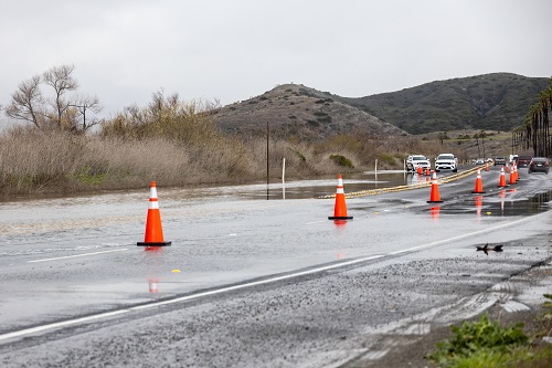 Southern California continues to feel the effects of a significant rain event that began last week, bringing record rainfall, landslides, and hurricane-strength winds. The heavy rain is the result of two atmospheric rivers, referred to as "Pineapple Expresses" because of their origins near Hawaii. Nearly half a year's worth of rain has fallen in two days. Since Sunday, February 4, areas in Los Angeles County have seen nearly one foot of rain, which has now moved east into western Arizona, southern Nevada, and southwestern Utah, raising the risk of flash flooding in those areas.