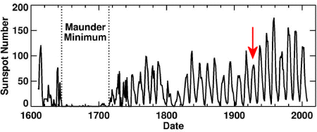Right now -- June 2009 -- the solar cycle is in a valley, the deepest of the past century. In 2008 and 2009, the Sun showed some of the lowest sunspot counts on record, as well as weak solar winds and a low solar irradiance, going more than two years without a significant solar flare. "In our professional careers, we've never seen anything quite like it," Pesnell said. "Solar minimum has lasted far beyond the date we predicted in 2007."