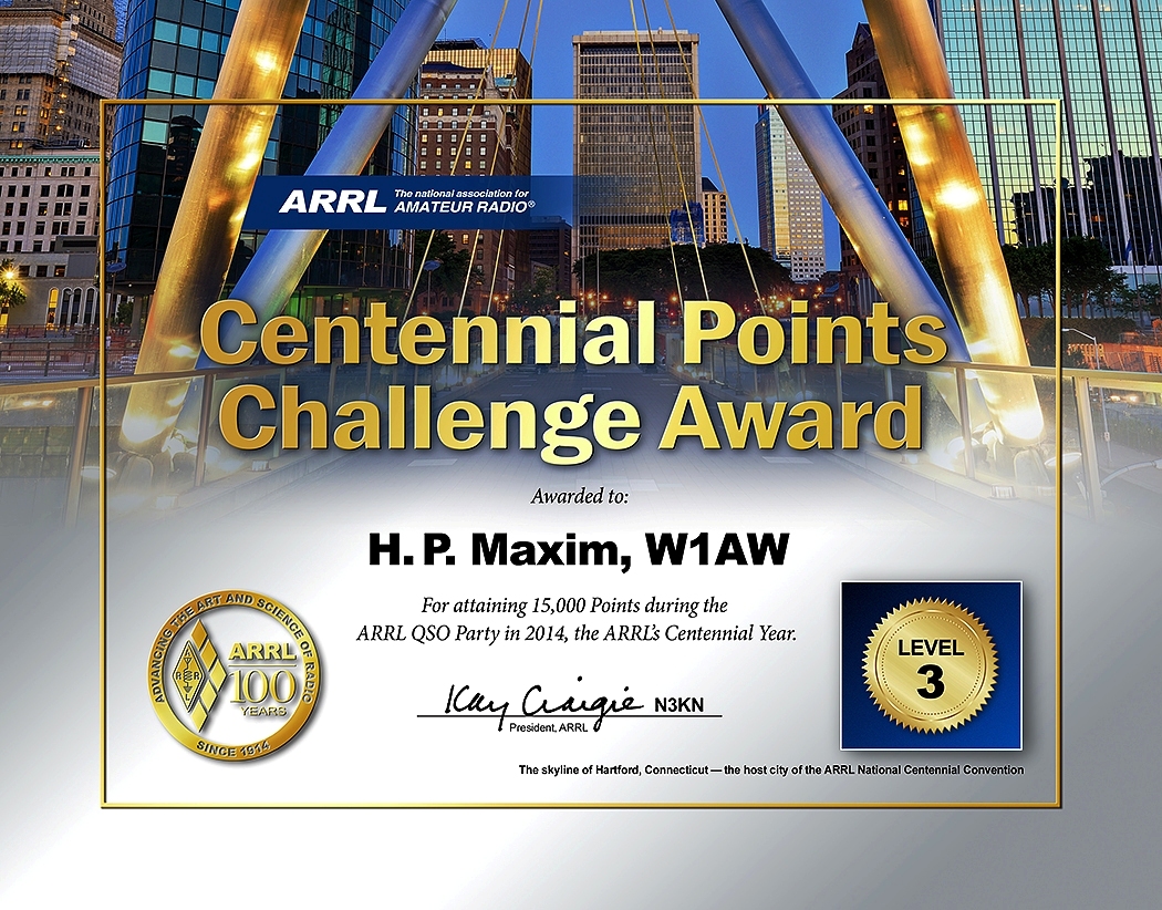 Participants May Apply Anytime for Centennial Points Challenge, W1AW WAS Awards