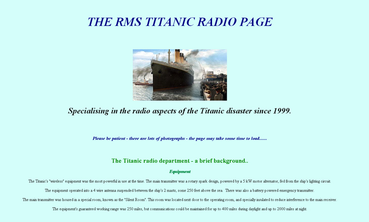 Also of interest is a BBC News Magazine article about Titanic’s radio operations titled Titanic: The Final Messages from a Stricken Ship.