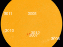 "An intense solar flare of class X1.5 was observed on May 10 at 1355 UT in the active region 3006 with a complex magnetic structure. Radiation from the flare ionized the Earth's atmosphere and caused a shortwave radio outage around the Atlantic Ocean, more specifically from Central Europe to the east coast of the United States (see Dellinger effect). Radio transmissions at frequencies below 30 MHz were attenuated for more than an hour after the eruption.