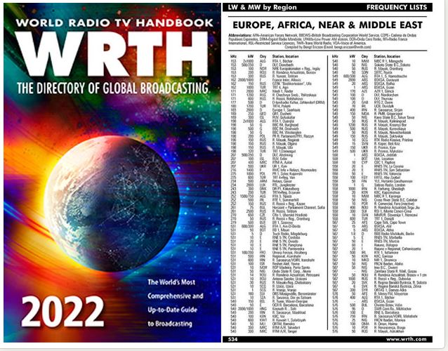 The EI7GL blog reports that publication of the World Radio TV Handbook (WRTH) will cease with the current 76th edition. For many years, the WRTH provided information about shortwave broadcast times and frequencies, but the number of listeners has dwindled as broadcasting has shifted to the internet. In addition, information on international broadcasting schedules and frequencies is also available on the internet. In a statement, the publishers said, “Having produced this book for the past 24 years, we are very sorry to announce that WRTH 2022 will be the final edition of World Radio TV Handbook produced and published by WRTH Publications. We realize that this news will be disappointing for many people. We wish to thank you all for your loyal support over the years. Good DX and Happy Listening.”